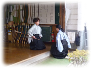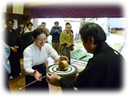 | 1/21(土) | 2017年初射会(昇格昇段祝射会) ・開会式(記念撮影と認許状授与) ![]() ![]() ・矢渡し ![]() ![]() ![]() ![]() ・祝射答射 ![]() ・閉会式(金的・白扇 表彰) ![]() ![]() |
